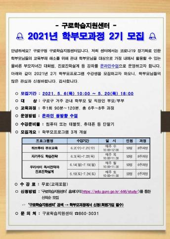 [맘스타임즈, 최영진기자] 구로구가 구로학습지원센터 온라인 학부모 프로그램을 운영한다.