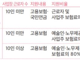 - (근로자 10인 미만) 예술인·노무제공자와 사업주가 부담하는 고용보험료의 80% 지원