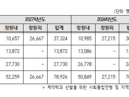 ¡ 전체 모집인원은 2026학년도보다 538명 증가한 345,717명