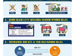 1. 사생활 침해 우려가 현저한 장소에는 CCTV를 설치해서는 안됩니다.- 목욕실, 탈의실, 수유실 (X)- 공원, 주차장 등 공개된 장소 (O)2. 공개된 장소에 CCTV 설치시에는 안내판을 부착해야 합니다.3. 개인