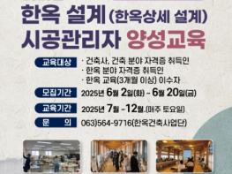 국토교통부는 6월 2일부터 한옥 설계·시공관리자 교육과정 수강생을 모집한다.국토부는 한옥의 대중화・산업화・현대화를 위해 ’11년부터 이 사업을 시작했다. 올해 5월에는 공모 과정을 거쳐 한옥 전문인