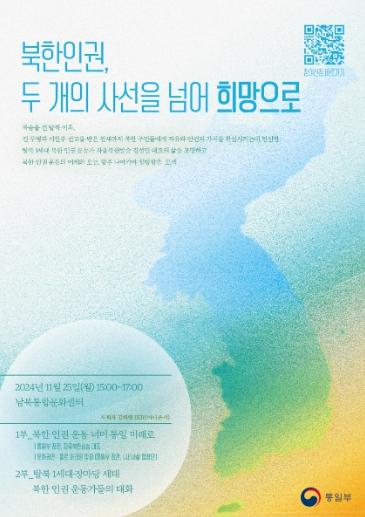 [맘스타임즈, 최영진기자] 통일부는 11월 25일 오후 3시부터 통일부 남북통합문화센터 대강당(서울시 강서구)에서 ‘북한 인권, 두 개의 사선을 넘어 희망으로’를 주제로 토크콘서트를 개최한다.