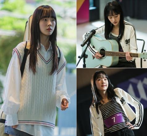 오늘(25일) 공개된 스틸에는 싱어송라이터가 되기 위해 고군분투하는 최하나로 분한 채원빈의 모습이 담겨 있다. 가수의 꿈을 이루기 위해 기타를 맨 채 유니스 엔터테인먼트로 들어가는 그의 표정에는 긴장감이 역력하다.