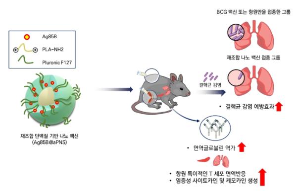 이 나노입자를 결핵 백신에 적용한 결과, 나노입자에 의해 T 세포 면역이 더욱 활성화되어, 기존 BCG 백신이나 항원만 접종한 경우보다 더 나은 결핵균 감염에 대한 방어 효과를 보였다.