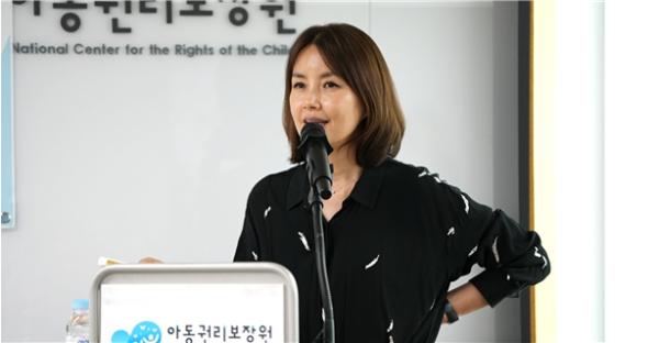 지난 달 17일 서울시청역 인근 아동권리보장원에서 열린 ‘아동권리 이야기’강연에서 아동권리보장원 홍보대사 신애라 씨는 양육에 대한 그의 소신을 전했다.