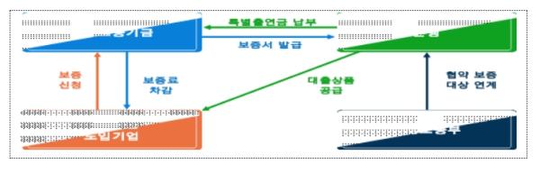 이를 위해 민관이 함께 뜻을 합쳐 체결하는 업무협약에서, 고용노동부는 퇴직연금을 새롭게 도입한 중소기업을 협약보증 대상으로 은행에 연계하고, 신용보증기금은 해당 기업에 보증서 발급 및 우대보증을 공급한다. 10개 은행은 대출상품을 공급하고 우대 금리를 적용함으로써 중소기업이 퇴직연금을 도입하더라도 당장의 경영자금 부족 문제를 최소화할 수 있도록 지원한다.