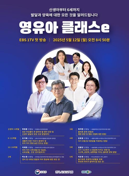 '영유아 클래스e'는 인지도 높은 전문가(소아청소년·소아정신과 분야 전문의 및 교수 등) 8명이 참여하여 총 24회에 걸쳐 0세부터 6세까지 연령별 발달 특성과 올바른 양육 방법을 체계적으로 소개하는 프로그램이다. 특히 사교육 저연령화 및 유아 대상 영어학원 증가 상황에서 부모들이 과도한 조기 사교육에 의존하지 않도록 영유아 발달에 적합한 양육 방법을 소개한다.