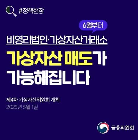 금융위원회, 비영리법인·가상자산거래소, 가상자산 매도 가능