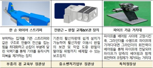 그간 본 대회를 통해 접수된 13,500건의 아이디어 중 827건이 특허 출원됐고(등록 562건), 산업현장에 즉시 적용 가능한 143건에 대해서는 해당 특허를 필요로 하는 기업에 기술을 이전했다.