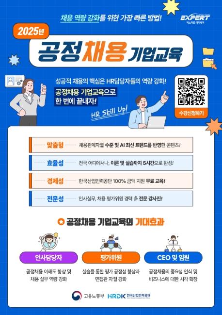 [맘스타임즈, 최영진기자] 고용노동부 한국산업인력공단은 5월 14일부터 11월 28일까지 ‘2025년 공정채용 기업교육’을 실시한다.