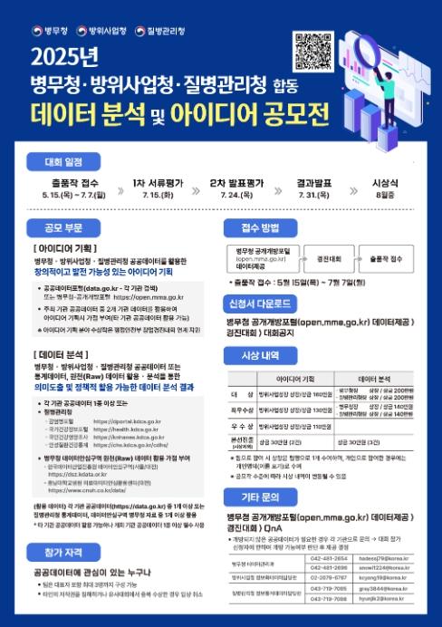 2025년 병무청, 방위사업청, 질병관리청 합동 데이터 분석 및 아이디어 공모전 개최