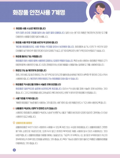 2024년 초·중·고등학생 13,952명 대상 설문 결과, 초등학생 74%, 중·고등학생 65%가 화장품을 사용하는 것으로 나타났다. 이에 식약처는 어린이·청소년 대상으로 올바른 화장품 정보를 전달하고 안전한 화장품 사용 방법을 알리기 위한 ‘어린이·청소년 화장품 안전 사용 교육’을 2015년부터 실시하고 있다.