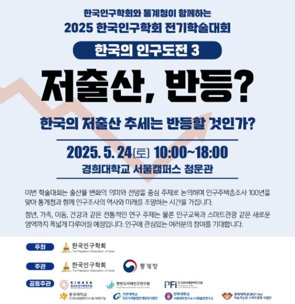 [맘스타임즈, 최영진기자] 통계청은 5월 24일 '2025년 한국인구학회 전기학술대회'를 한국인구학회와 공동으로 “저출산, 반등?”을 주제로 경희대학교 서울캠퍼스 청운관에서 개최한다.