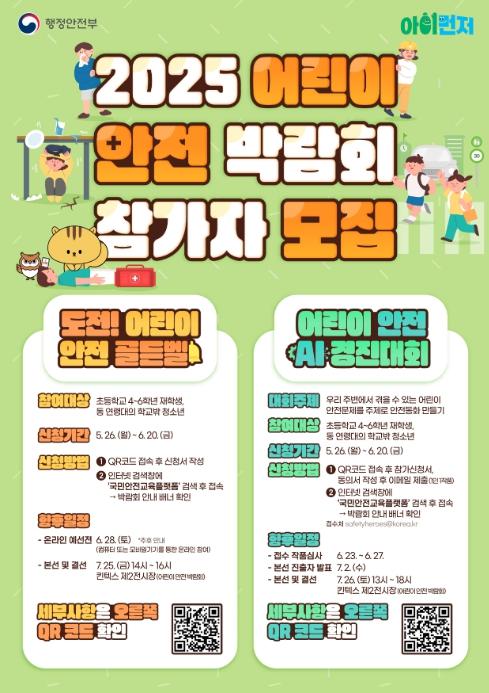 [맘스타임즈, 최영진기자] 행정안전부는 5월 26일부터 6월 20일까지 ‘2025 어린이 안전 박람회’에 참가할 어린이를 모집한다.
