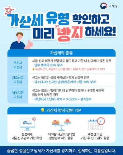 · 과소신고 가산세: 신고는 했지만 실제 세액보다 적게 신고한 경우.