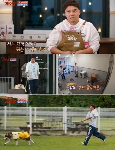 15일(일) 오전 10시 30분 방송되는 JTBC ‘집 나가면 개호강’에서는 ‘개호강 유치원’의 전현무가 자리를 비운 두 선생님 조한선&레이를 대신해 ‘개고생’에 나선다. 이날 ‘대형견 반’의 체육을 담당했던 조한선은 연차로 출근하지 않았다.