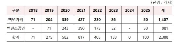 중기부는 2018년부터 ‘백년가게 및 백년소공인 육성사업’을 통해 지역을 대표하는 우수 소상공인을 발굴·육성해 왔으며, 신규 지정된 업체를 포함하여 현재 전국의 백년가게는 1,407개사, 백년소공인은 981개사로 늘었다.