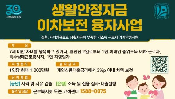 근로복지공단(이사장 박종길)은 고물가·고금리가 지속되는 가운데 저소득 취약계층의 경제적 부담 완화를 위해 지난 5월부터 대출 이자를 최대 3%까지 지원하는 생활안정자금 이차보전 융자사업을 시행하고 있다.