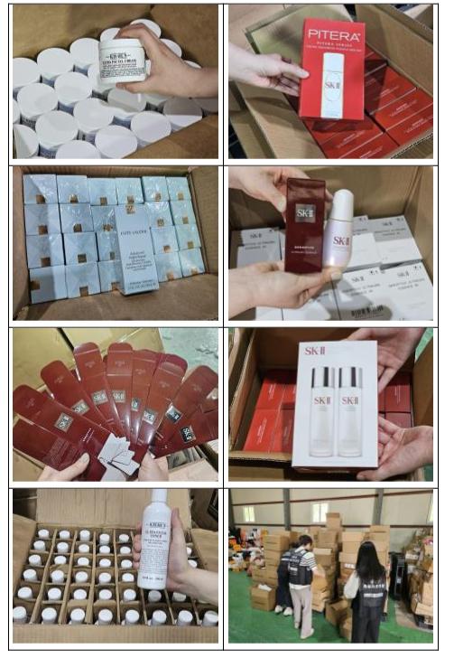 특히 유통업자에게 짝퉁 화장품을 정품인 것처럼 속여 공급했고, 유통업자가 해외로 수출을 시도하는 과정에서 상표경찰이 이 사실을 인지하여 짝퉁 화장품 6,000여 점(정품가액 5억 6,000만 원)을 전량 압수조치(’24.3월)했다.