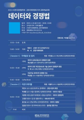 이번 학술대회는 학계 및 민간 전문가와 공정위 관계자가 참석하여 디지털 경제의 핵심인 데이터와 관련된 경쟁법적 쟁점을 논의하고, 향후 관련 분야에서 바람직한 경쟁법 집행과 경쟁정책 방향을 고찰하기 위해 마련됐다.