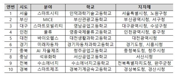 2025년 협약형 특성화고등학교 공모에는 15개 지역 총 37개 연합체가 참여했으며, 산업 및 지역 전문가로 구성된 협약형 특성화고 선정심사위원회의 서면·대면 평가를 거쳐 최종적으로 10개 지역 10개 협약형 특성화고가 선정됐다.