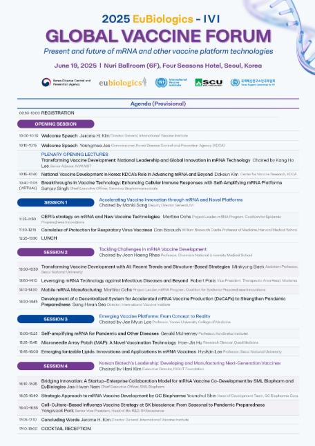 포럼에서는 한국의 백신개발 현황(김도근 공공백신개발지원센터장, 질병관리청)과 자가증폭 mRNA 기술(산자이씽, 인도 제노바 바이오제약 CEO)에 대해 기조연설을 하고, CEPI(전염병대비혁신연합)의 백신개발전략에 대해 마티나 오츠스 박사가 발표한다.