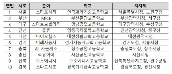 2025년 협약형 특성화고등학교 공모에는 15개 지역 총 37개 연합체가 참여했으며, 산업 및 지역 전문가로 구성된 협약형 특성화고 선정심사위원회의 서면·대면 평가를 거쳐 최종적으로 10개 지역 10개 협약형 특성화고가 선정됐다.