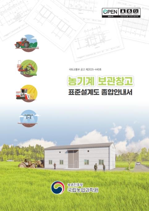 책은 크게 종합 안내서, 표준설계도, 설계설명서‧계산서, 시방서, 내역서 5종으로 구성됐다. 농업기계 대형화, 다양화, 규모화 추세를 반영해 규모(177, 360㎡)와 구조(철골, 경량 철골)에 따라 4가지 설계 유형을 제시한다.